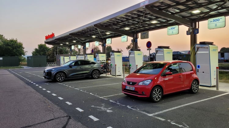 Le départ devait être donné tôt le samedi 2 août, « devait » car Bison Futé voit noir ce jour-là et j’avoue céder à la panique générale face à l’Armageddon automobile annoncé. Le coup de sifflet est donc finalement donné la veille à 18h00 pour un match qui se fera donc au final majoritairement de nuit avec une batterie, une fois n’est pas coutume, à 100 %. 176 km plus loin, l’arrivée à la Ionity de Dommartin-lès-Toul à 23 % correspond à l’heure du dîner. 49 minutes sont nécessaires pour récupérer 18,69 kWh et, tous repus, en route pour l’étape suivante avec en ligne de mire, 172 km plus loin, le parking du Brit Hôtel à la Chapelle-Saint-Luc où l’arrivée se fait à 21 % de charge et alors qu’on vient de passer minuit. Petite ronflette d’une heure, le temps de récupérer 22,81 kWh, et le périple reprend. Avec 188 km, c’est la plus longue étape, d’où une arrivée aux bornes Allego Pathé Saran à 4h30 avec 12 % de charge. Et c’est là où je fais une erreur impardonnable : au lieu de me brancher sur la borne DC 50 kW avec son kWh à 0,505 €, j’attache mon fidèle destrier à une 300 kW faisant payer sa forte puissance 0,609 du kWh en ajoutant des frais d’occupation de 0,256 € par minute. S’en est donc suivi ce qui sera la plus chère des siestes puisque, quand le réveil sonne une heure plus tard, l’addition pour les 23,17 kWh délivrés est de… 30,80 € au lieu de 12,72 €. Mais ça n’empêche pas le soleil de se lever. Plus qu’une charge avant d’arriver à destination et elle se fait 139 km plus loin sur la station Electra du Parc Manceau, au Mans, à 7h50. Un petit déjeuner pour tous et, 53 minutes plus tard, avec 17,2 kWh supplémentaires dans la batterie, il est temps d’effectuer les derniers 148 km qui nous séparent de notre lieu de villégiature, son transat dans le jardin et ses dolmens à proximité.