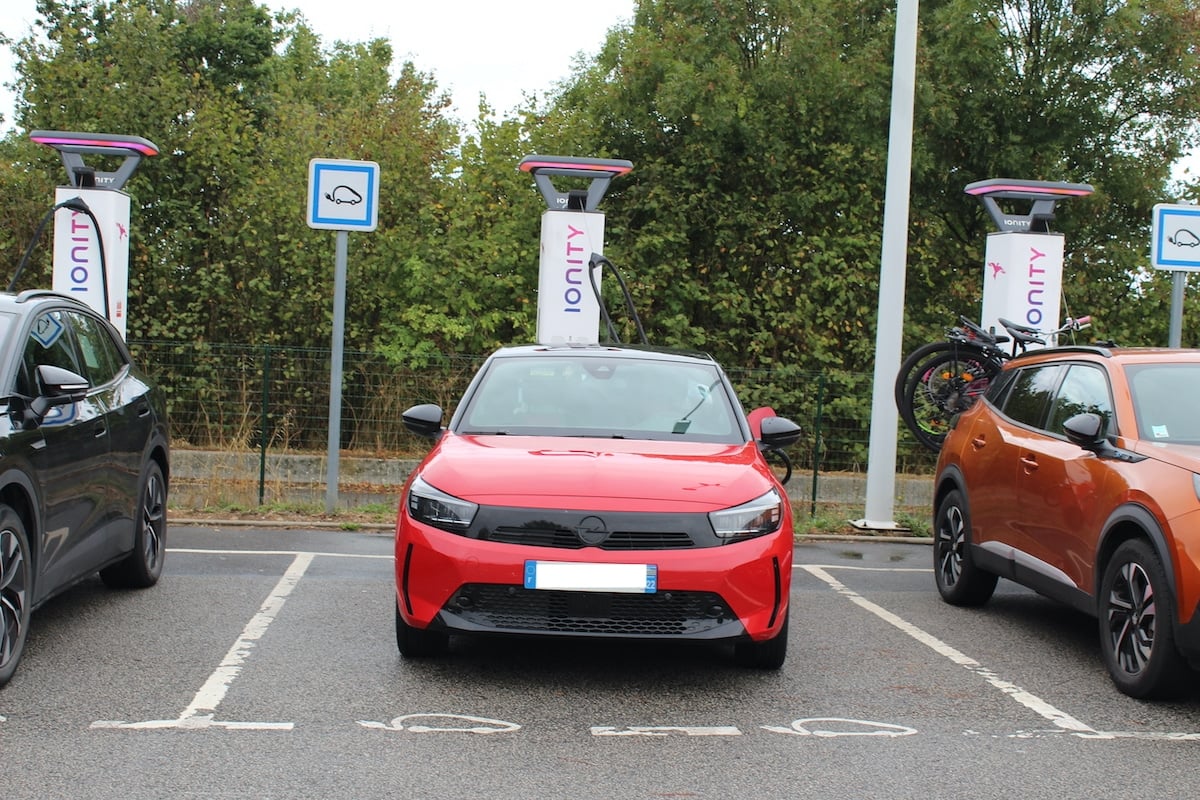 De retour sur le parking, les rôles pilote et passager s’inversent du côté de l’Opel Corsa-e, tandis que les deux autres aventuriers gardent leur place. Après 85 km parcourus, l’heure des grands au revoir a sonné. Nous en profitons pour faire la dernière recharge de la journée à l’aire de Saint-Léger sur la A10. Puis nos deux accompagnants repartiront de leur côté pour profiter de quelques jours dans la région charentaise. La citadine rouge et ses deux coéquipières continueront leur périple jusqu’à Bordeaux.