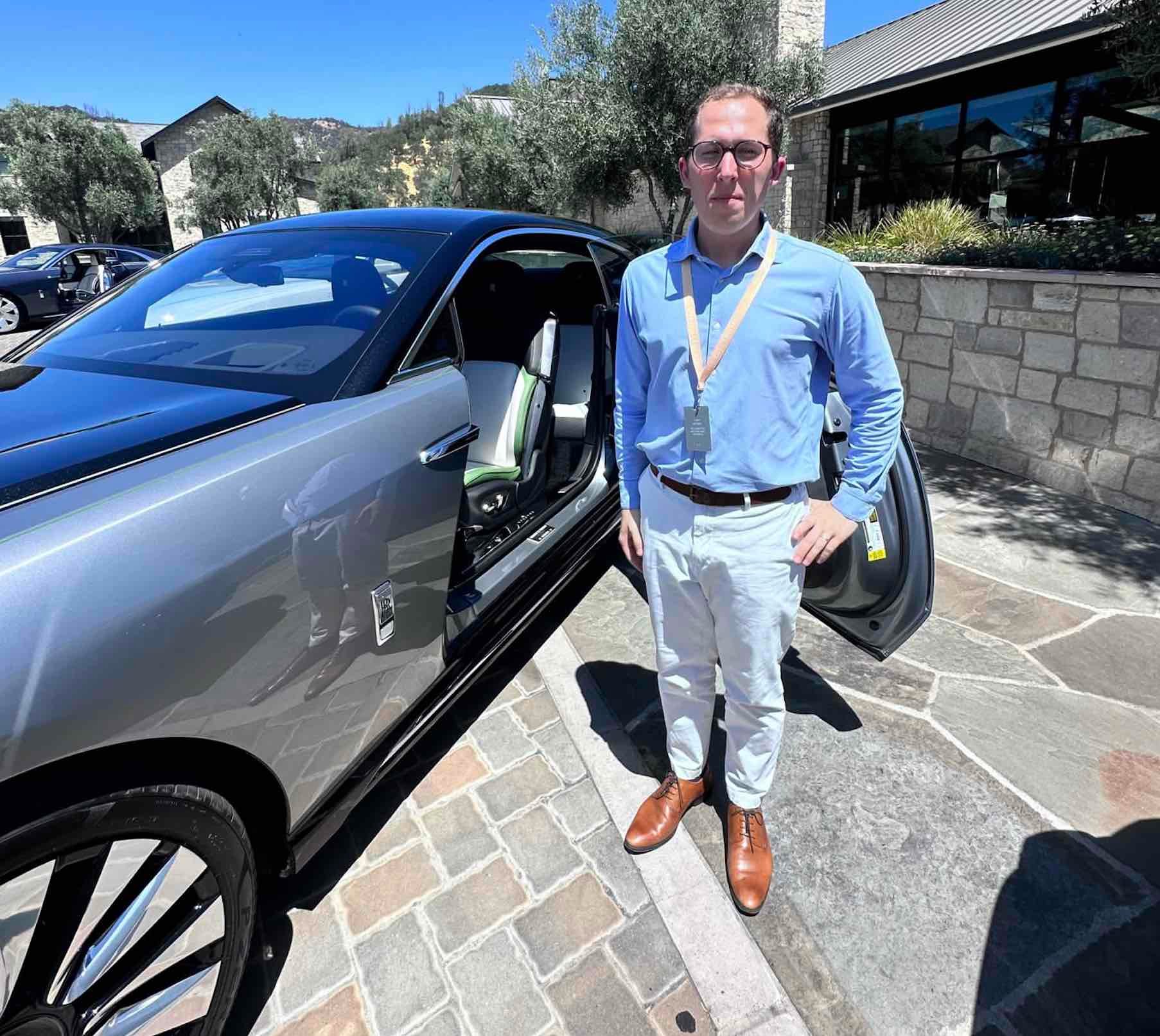 Il s’est fait démarcher pour ses différentes expériences dans les domaines du luxe et de l’électromobilité. En 2022, il est donc devenu Experience Advisor au sein de la concession Rolls-Royce de Monaco. Il nous raconte qu’il a fallu faire « le choix difficile de quitter Porsche pour l’aventure Rolls-Royce qui ne se présente qu’une seule fois dans une vie ». Il se trouve que le premier modèle électrique de la marque arrivait à ce moment-là. La Rolls-Royce Spectre : un coupé deux portes de 5,45 mètres de long.