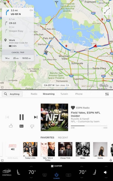 Totalement repensé, le lecteur multimédia revendique une expérience plus personnalisée. « Les recherches sont désormais plus simples et plus efficaces » explique le constructeur dans son communiqué, annonçant également une amélioration dans l’intégration du service Spotify.