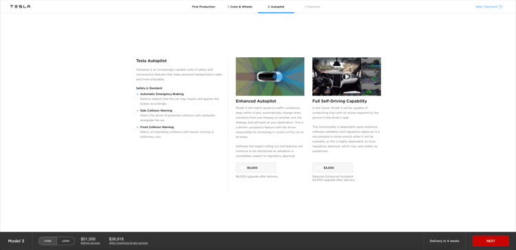 Toujours limitées, les options du configurateur se limitent au choix de la couleur et des jantes. Les images ci-dessous, partagées par You You Xue et relayées par Electrek, montrent également d’autres options telles que le pack Premium (5000 $), l’Autopilot (5000 $) et la capacité de conduite 100 % autonome (3000 $). Pour l’heure, seule la version « Long Range » peut être commandée. Pour la version de base, il faudra patienter début 2018. Idem pour l’option « dual motor » dont l’arrivée est prévue au printemps.