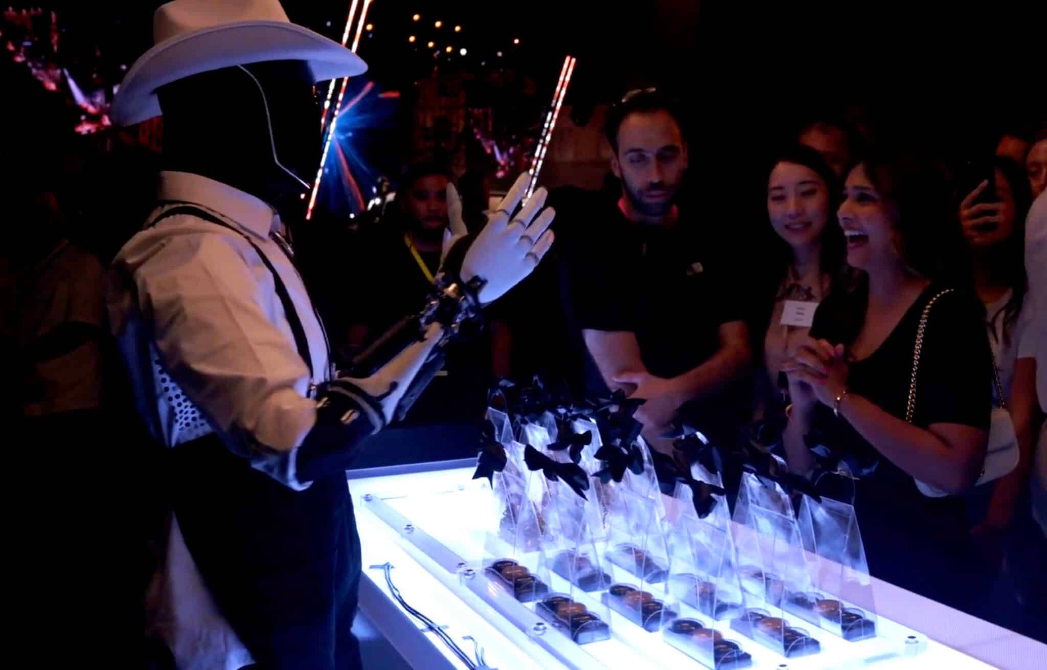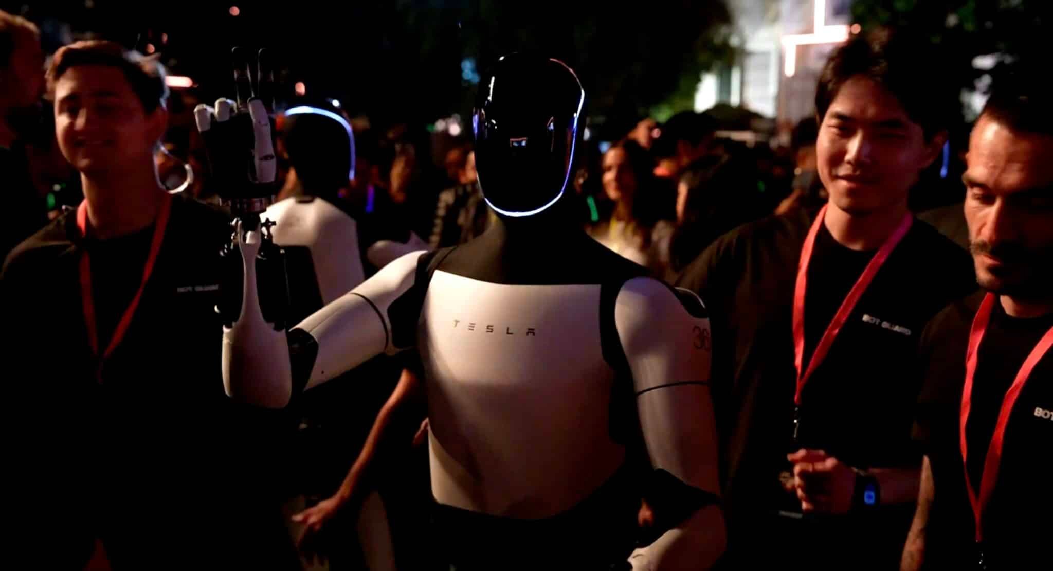 Après la présentation du Cybercab, on a vu le robot Optimus « interagir » avec les invités. Enfin, c’est un grand mot. En réalité, il ne faisait pas grand-chose d’autre que de s’agiter dans tous les sens. Certains réalisaient toutefois de petites actions, comme remettre des cadeaux aux personnes présentes, ou jouer à pierre-papier-ciseaux. Les autres dansaient et se promenaient dans la foule.