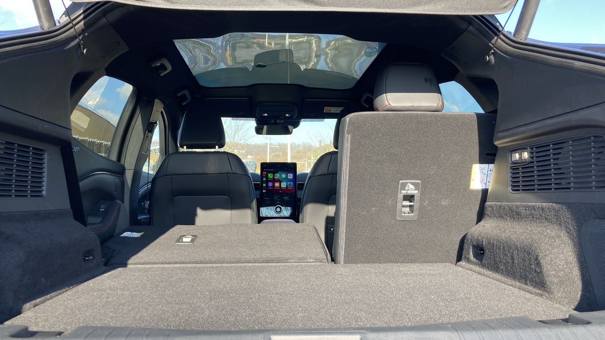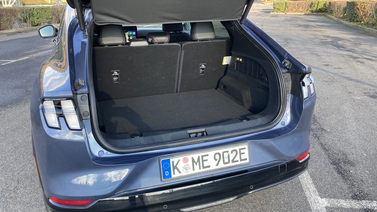 Profond mais pas très haut, le coffre totalise 400 litres de capacité. Au final, il n’est pas immense, mais reste fonctionnel avec un double fond pour ranger les câbles et une banquette rabattable en deux parties. Comme sur les voitures électriques de Tesla, le Ford Mach-E intègre un second coffre à l’avant. D’une capacité de 81 litres, il est étanche et dispose d’une vis de purge. Plutôt pratique si on a besoin de transporter des affaires sales.