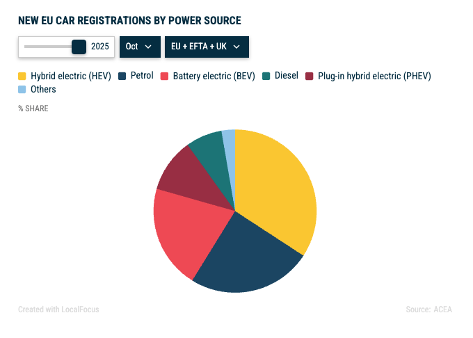 Toujours sur octobre 2025, la part des voitures 100 % électriques et hybrides rechargeables atteint même 31,3 %. Pas de doute, l’intérêt pour ces motorisations plus propres est de plus en plus fort.