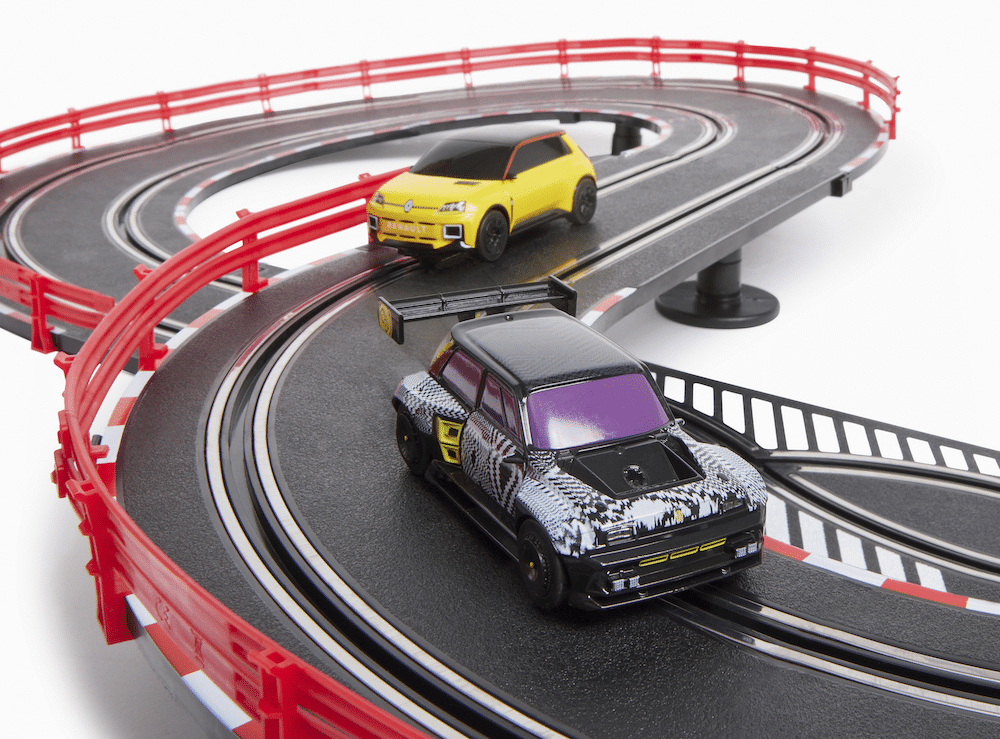 Les concepts électriques de chez Renault ont le droit à leurs répliques… électriques sur circuit ! La boutique The Originals de Renault propose un petit circuit électrique d’une longueur de 3m80, sur lequel on peut faire rouler les deux concepts récents de Renault R5 électriques. La Renault 5 E-Tech Prototype et la Renault 5 Turbo 3E sont en effet présentes à l’échelle 1/43. Les voitures ont les phares qui s’allument, et les manettes proposent une option Turbo.