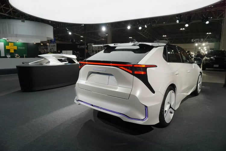 Les jantes à 3 branches du Concept Zero sont particulièrement impressionnantes. Pour lui donner une apparence plus cohérente, Modellista a remplacé l’habillage noir des ailes du bZ4X par des panneaux de la couleur de la carrosserie. Cela donne un profil plus élégant et plus homogène au SUV électrique. Il faut toutefois aimer le style rétro-futuriste.
