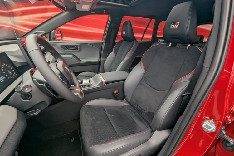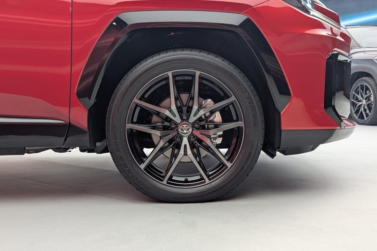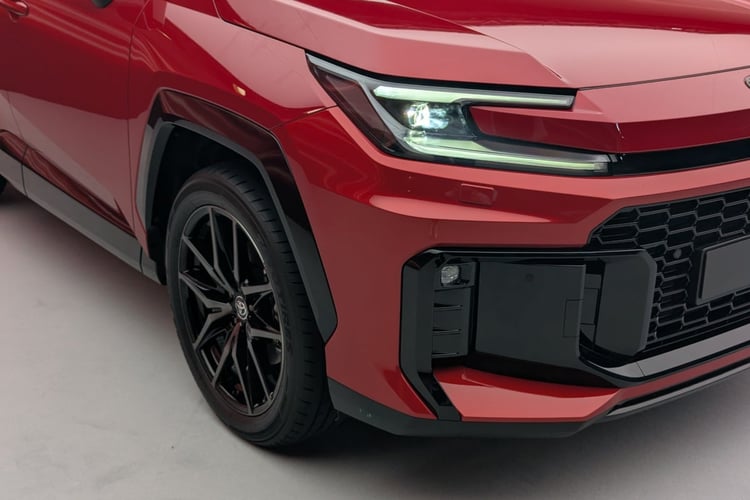 Cette nouvelle génération arrive aussi avec la finition GR Sport. Celle-ci est rapidement reconnaissable à sa robe spécifique, notamment composée d’un bouclier expressif qui donne un drôle de faciès au SUV. On remarque aussi la présence de jantes de 20 pouces chaussées de Toyo Proxes Sport. A bord, on retrouve un pédalier alu’ et des sièges Sport au demeurant fermes. À juger sur la route. Mais cette version ne fait pas que dans l’apparat puisque la branche sport de Toyota indique avoir élargi les bandes de roulement de 20 mm, installé des amortisseurs « hautes performances », des bras de suspension arrière renforcés et retouché les lois d’amortissement et de direction. Les motorisations, elles, sont inchangées.