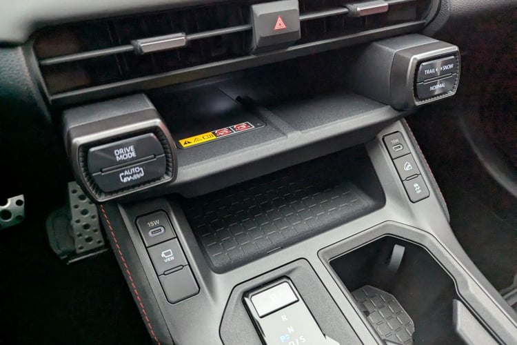 Toyota indique le système de régulation thermique du pack a entièrement été revu pour assurer des performances optimales dans toutes les conditions. Comme sur une voiture 100 % électrique, le système bascule automatiquement entre les fonctions refroidissement et réchauffement, surtout pour assurer des recharges par temps froid. Et pour cause : au système AC de 11 kW nettement plus puissant qu’auparavant (un plein d’électron en 3 h 00), le Toyota RAV4 PHEV dispose d’un système de recharge rapide Combo-CCS de 50 kW. Le 10-80 % est annoncé en 30 minutes. Alléchant pour faciliter le ravitaillement et rouler plus souvent en mode électrique. Mais rappelons que nos mesures avec un Skoda Kodiaq iV ont démontré que le coût d’utilisation est équivalent à un mode de fonctionnement hybride batterie vide ! Un abonnement pour la recharge rapide sera indispensable.