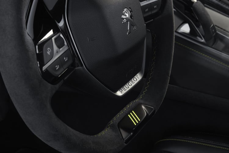 A l’intérieur, le dispositif i-Cockpit a été spécialement travaillé pour la conduite sportive. Peugeot nous promet une immersion totale grâce au design spécifique de l’écran tactile 10 pouces et de la dalle numérique tête haute de 12,3 pouces.