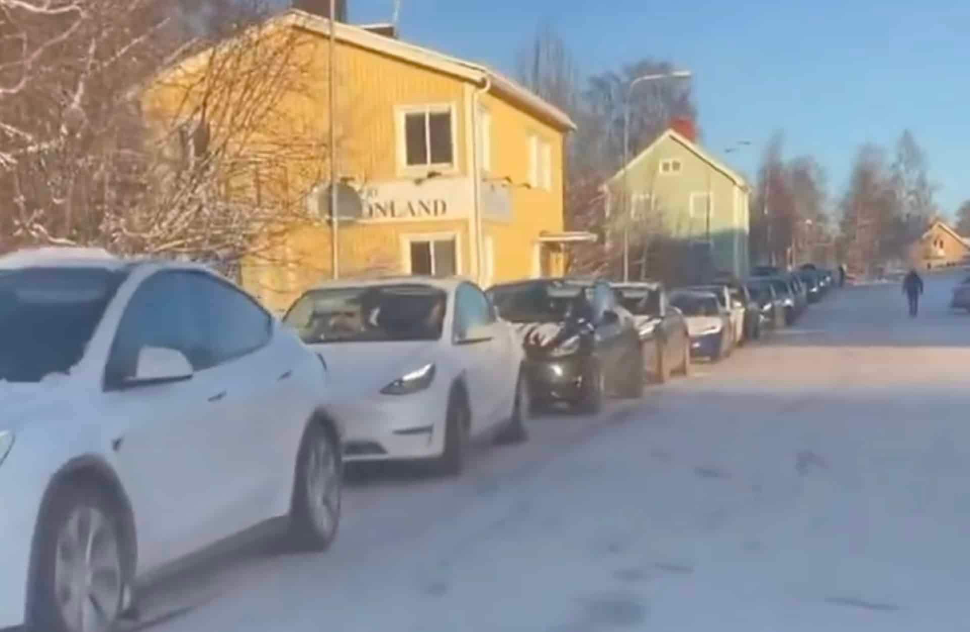 Teslas (mostly) in the middle of 🇸🇪Sweden waiting in line at a Superchargerstation in Malung. Can you count how many there are in line? Because of IF Metall, Tesla can’t connect new stations to the grid. Crazy, isn’t it! @MdeZegher https://t.co/86XFMUKBSS
