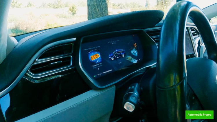 Lors de la présentation de la Tesla Model S, sa tablette centrale tactile de 17 pouces implantée en mode portrait avait largement séduit les curieux et futurs acquéreurs. « Elle est hyper plaisante et laisse de la place pour toute la partie instrumentation avec une grande cartographie : on voit bien l’itinéraire. C’est un point que j’adore vraiment », approuve Yoann.