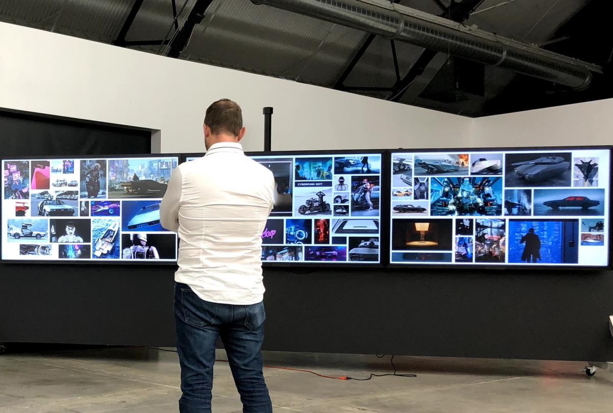 À droite de l’image, on aperçoit également des inspirations futuristes. On reconnaît quelques œuvres comme Retour vers le futur et la célèbre DeLorean. Des images de bateaux et de chars d’assaut futuristes. Une belle planche cyberpunk, qui on peut l’imaginer, a su inspirer le design du pick-up de Tesla.