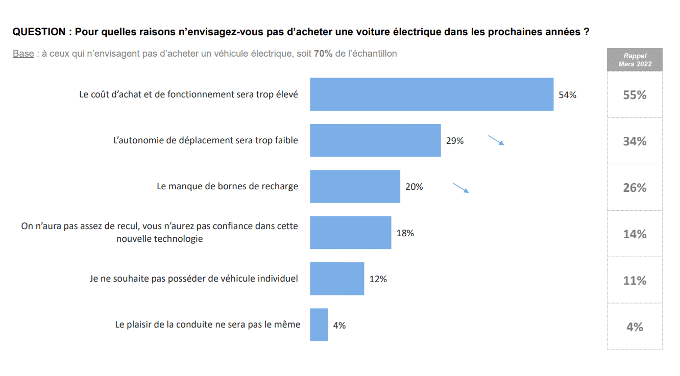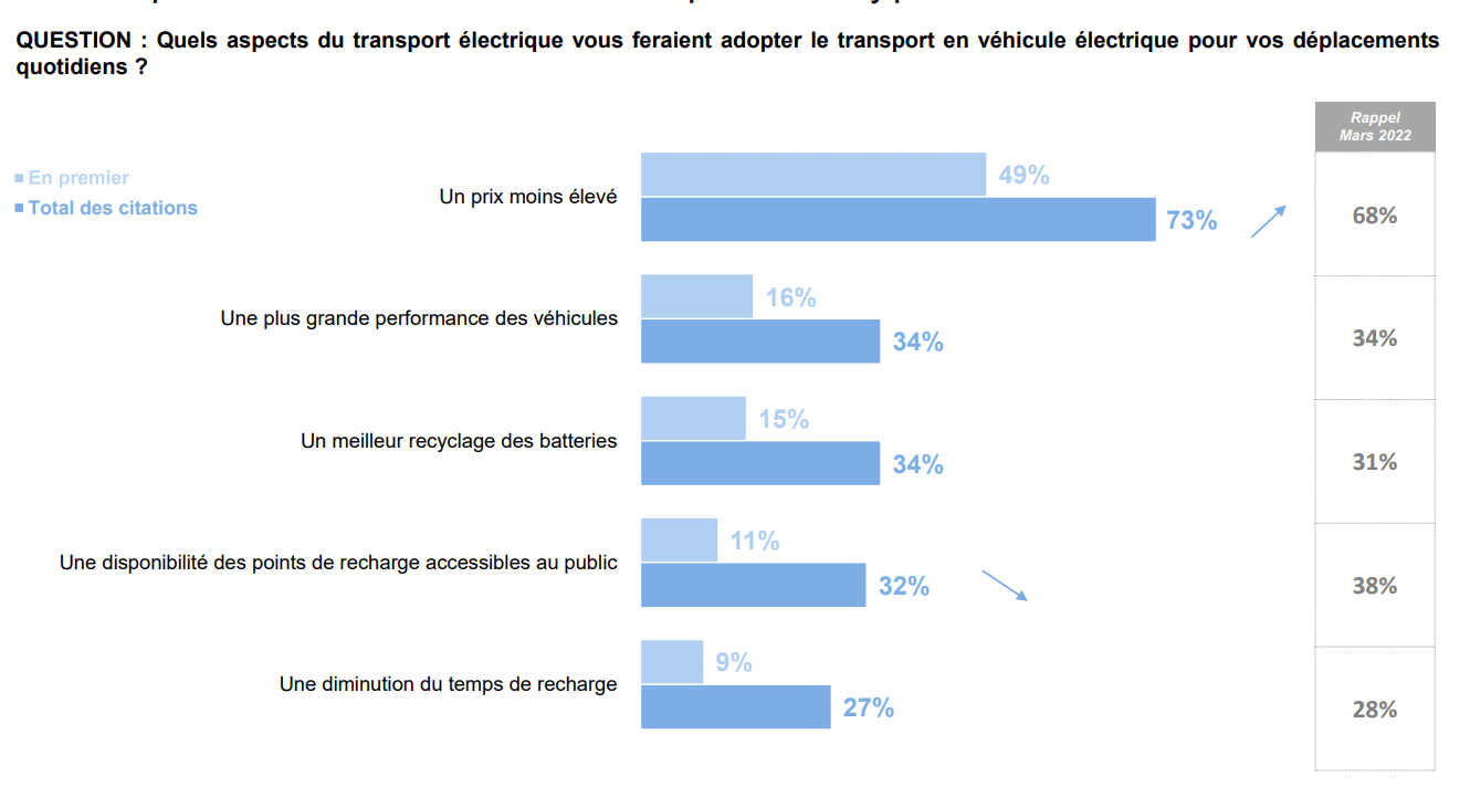 « Tout se passe comme si les Français étaient de plus en plus sceptiques à l’égard de cette technologie » constate l’institut de sondage qui liste trois principaux freins à l’adoption : le prix, l’autonomie et les bornes de recharge. Toujours les mêmes !