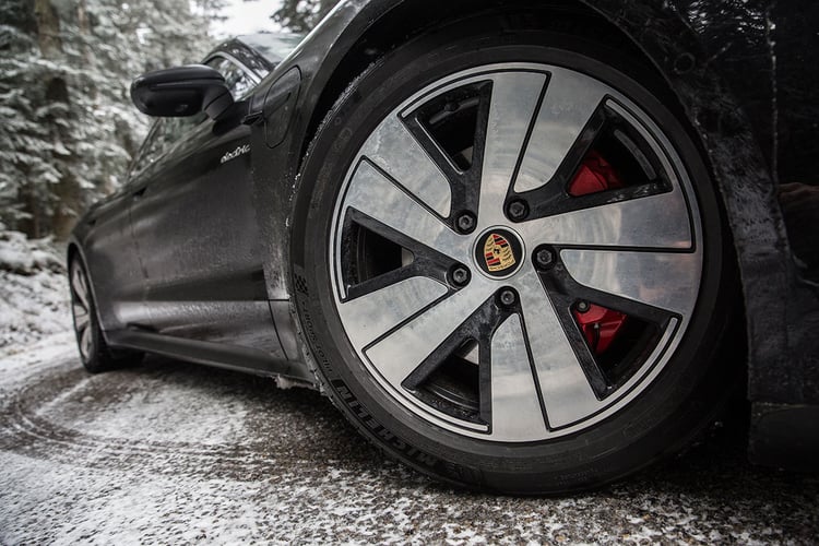 Notons l’effet des pneus 3PMSF, qu’il s’agisse de gommes hiver ou de pneus été avec homologation hiver (toute saison 3PMSF autorisés par la loi Montagne). Difficile d’entrer dans le détail, les performances étant disparates d’une référence à l’autre. Cependant, l’étiquetage européen en matière de consommation de carburant est un bon indicateur, même si la norme ne se focalise pour le moment que sur la surconsommation moyenne pour des voitures thermiques (écarts absolus exprimés en l/100 km). D’après nos observations préliminaires, nous estimons la surconsommation mixte à hauteur de 0,9 kWh/100 km d’une tranche à l’autre, et de 1,8 kWh/100 km en passant de la catégorie A à C. Pour faire simple, vous pouvez envisager une surconsommation de 1 kWh/100 km par tranche supplémentaire jusqu’à la catégorie C. Au-delà, l’augmentation est plus importante, et ne concerne généralement que des pneus premier prix peu recommandables, hormis pour le portefeuille (et encore…).