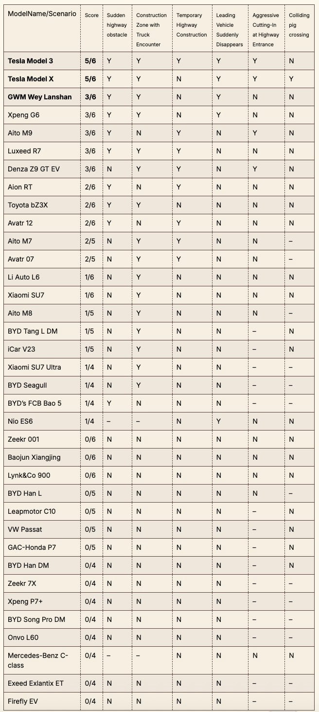 Des journalistes chinois ont passé en revue 36 modèles pour établir un classement des voitures les plus sûres. Les aides à la conduite de chaque véhicule ont été mises à l’épreuve. Les résultats montrent que, pour le moment, Tesla n’a pas grand chose à envier aux marques chinoises. On fait le point.