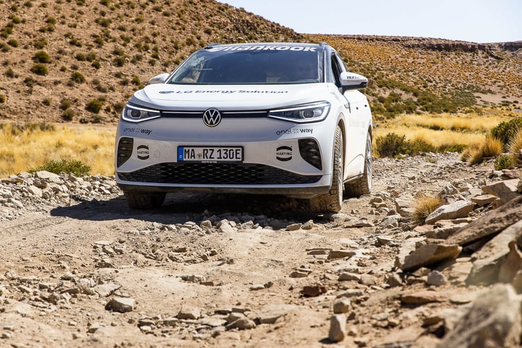 Cette fois-ci, Zietlow et son équipe de trois personnes, un Volkswagen Amarok forcément diesel servant de véhicule de support, ont démarré leur aventure à Santiago, au Chili, se dirigeant vers le nord à travers l’Argentine jusqu’à la province de Sur Lípez, en Bolivie, jusqu’à la base du Cerro Uturuncu, un volcan dormant, avant d’en commencer l’ascension. Au onzième jour, le record est battu avec une altitude atteinte de 5 816 m, battant le précédent qui s’établissait à 5 771 m et, ce, sans utiliser d’équipements extérieurs tel un treuil. L’ID.4 utilisé était toutefois équipé de suspensions semi-actives CVSAe développées par Tenneco et disponibles dans le commerce.