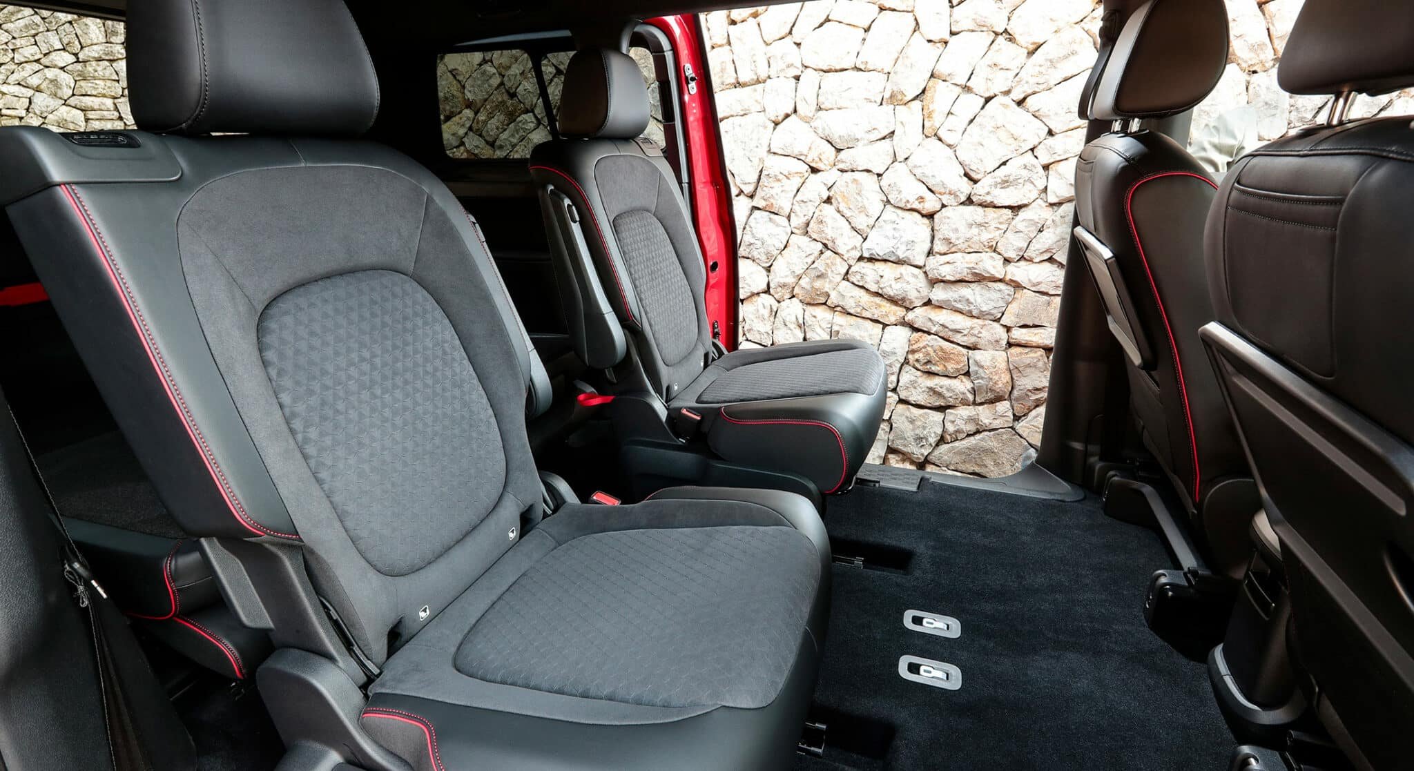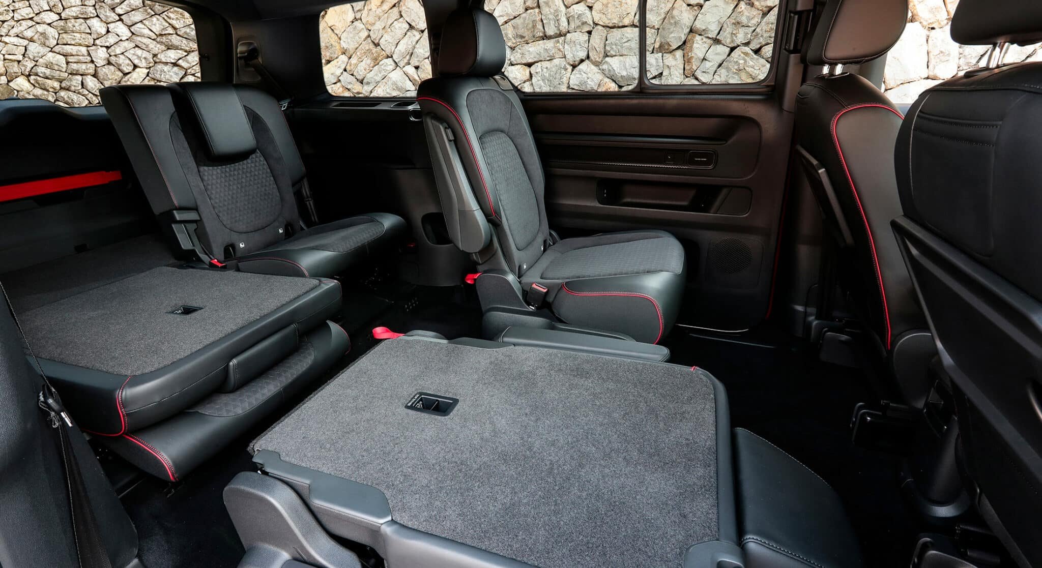 De son côté, la version longue 7 places peut accueillir 1 340 litres jusqu’au bord supérieur des dossiers de sièges de la deuxième rangée et 2 469 litres jusqu’à la première rangée de sièges. En revanche, interrogée sur le sujet, Volkswagen ne précise pas si ces deux valeurs correspondent à un chargement avec les dossiers des deux sièges du rang 3 rabattus ou si c’est dans une configuration avec ces mêmes sièges totalement démontés et extrait de l’habitacle. A l’heure d’écrire ces lignes, nous attendons toujours cette information. En revanche, on sait que vous pourrez loger jusqu’à 306 litres en configuration 7 places et que le constructeur propose toujours en option ces deux caisses pliantes, ainsi que sa planche « Multiflex » pour ajouter un seuil de chargement, mais aussi d’un plancher plat lorsque tous les dossiers des sièges sont rabattus.