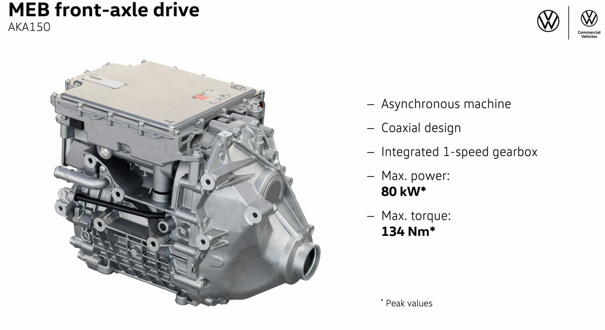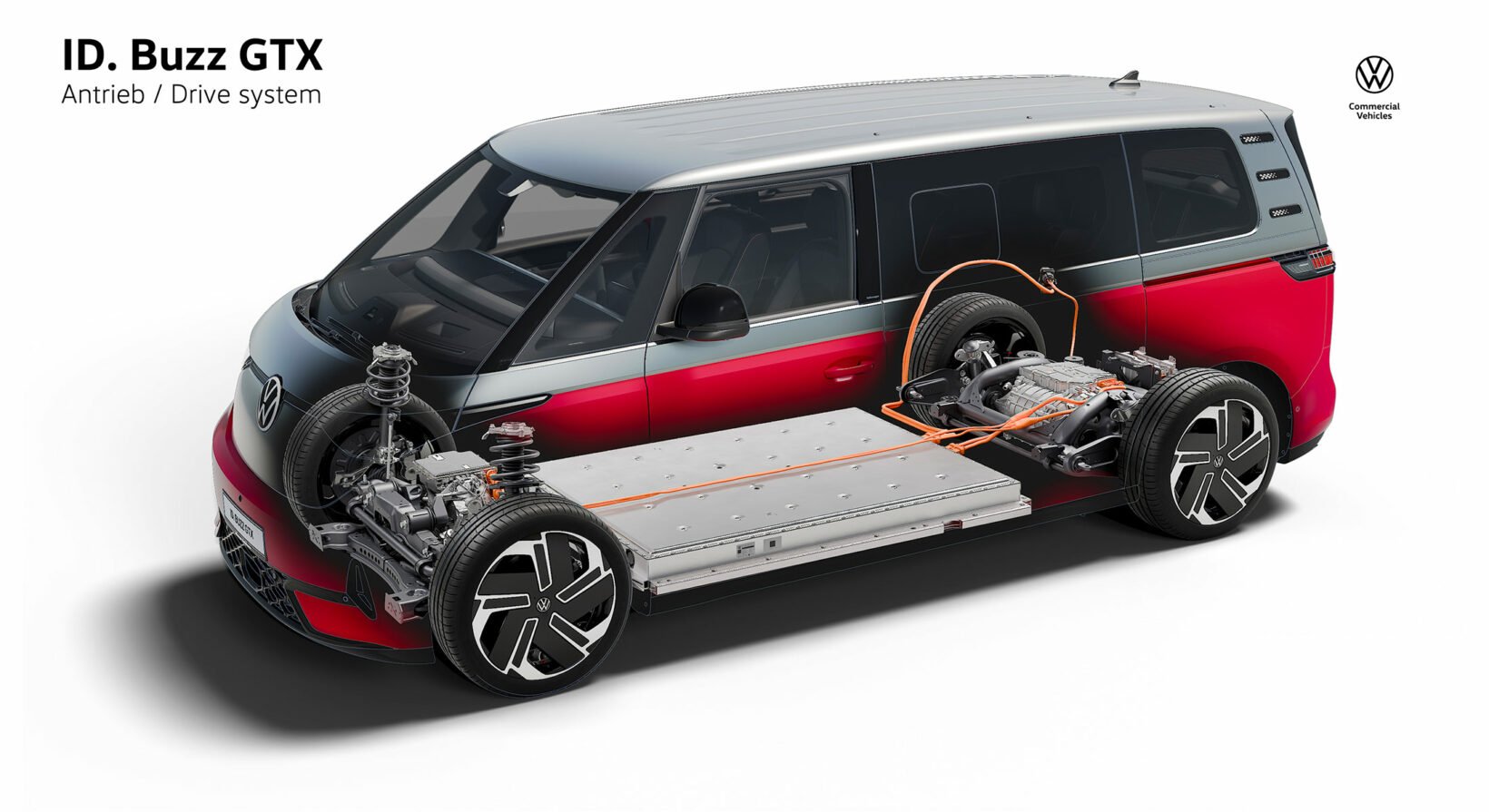 En effet, celle-ci est plus précisément composée d’un moteur synchrone à aimant permanent (PSM – type APP550) de 210 kW (286 ch) installé sur l’essieu arrière et un moteur asynchrone (ASM) de 80 kW (109 ch) sur l’essieu avant. Chacun offrant respectivement 560 et 134 Nm de couple permettant à cet ID.Buzz de catapulter l’engin dans un 0 à 100 km/h en 6,5 secondes. La vitesse maximale est bridée électroniquement à 160 km/h.