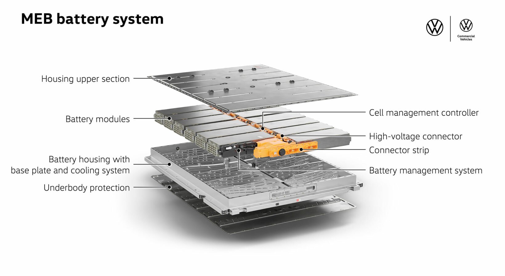 Deux capacités de batteries sont proposées pour l’ID.Buzz GTX. Un premier pack composé de 12 modules et offre une capacité nette de 79 kWh. Un second composé de 13 modules offrant une capacité de 86 kWh nette. Cette dernière n’est disponible que sur la version rallongée 7 places en raison de l’emplacement nécessaire dans le soubassement pour accueillir le pack.