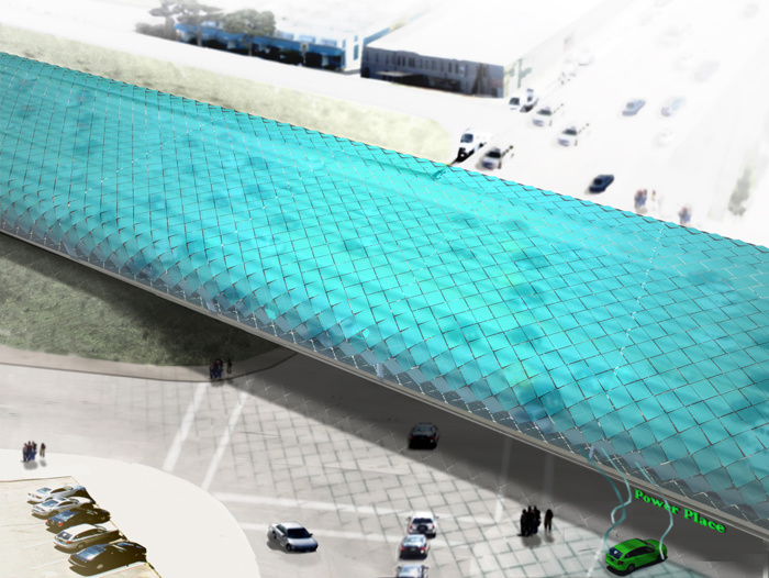 Les feuilles de silicium intégrées à ces dalles,via une résine protectrice, vont générer un courant qui sera récupéré par les câbles électriques rajoutées à la chaussée puis injectées au réseau de distribution électrique locale.