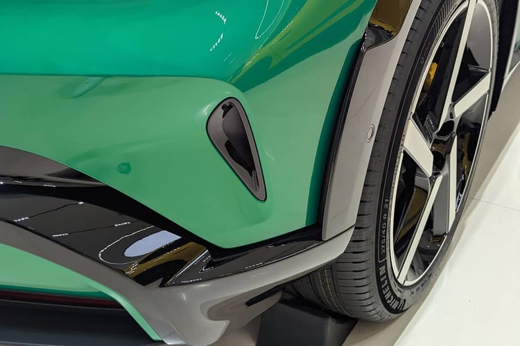 Son secret réside dans sa silhouette originale, façon chaussure de clown, avec un long capot et une cellule reculée. Alors que la berline ne cache pas vraiment ses inspirations stuttgartoises, ce SUV fait davantage penser à un Ferrari Purosangue. Que ce soit dans sa version de base ou en finition Max, la présentation est sportive, avec des ouïes tantôt assumées, tantôt dissimulées. C’est le cas des conduits situés juste au dessus des phares, qui ne sont donc plus entièrement ovales comme sur la SU7. À l’arrière, s’il n’existe aucune ressemblance évidente, la poupe fait aussitôt penser à un produit Aston Martin. L’aileron supérieur et le diffuseur proéminent impressionnent ici.