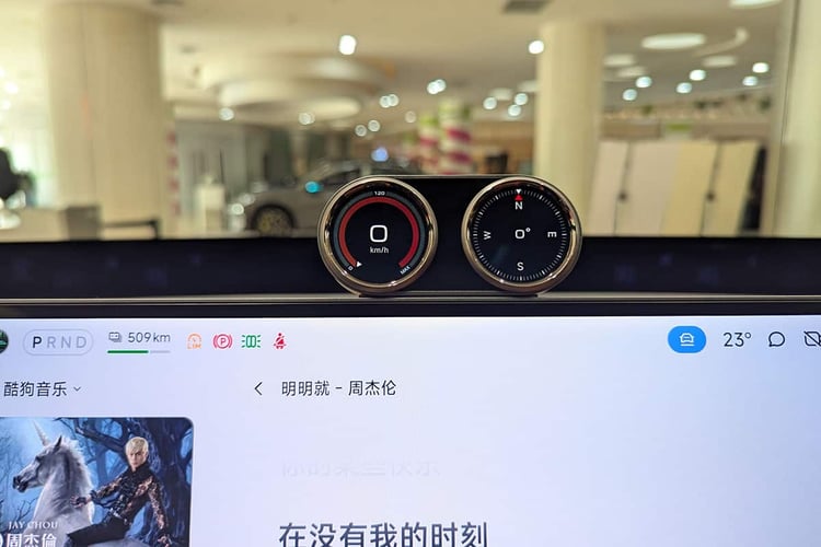On ne peut pas vraiment affirmer que le Xiaomi YU7 apporte un vent de fraîcheur avec sa présentation intérieure. Il reprend les « codes Tesla » habituels qui consistent à débarrasser le poste de conduite. Mais il se démarque des autres produits locaux avec une instrumentation repoussée à la base du pare-brise à l’instar du BMW iX3. Baptisé Xiaomi HyperVision, ce dispositif projette les informations à la manière d’un affichage tête-haute. La lisibilité apparaît correcte, mais il faudra, comme avec le Bavarois, attendre les premiers essais pour juger la facilité de lecture sur la route.