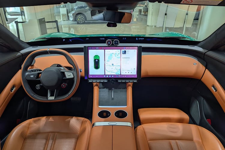 La déclinaison Max présentée ici repose sur un pack NMC à cellules CATL, pour une capacité totale de 101,7 kWh. On y retrouve une paire de machines HyperEngine V6s (ça va trop loin) pour une puissance totale de 691 ch (508 kW en pic) et 866 Nm de couple. Le 0-100 km/h est arraché en 3,2 s, et le 100-0 km/h s’effectue en 33,9 m avec le freinage Brembo. Dans ce dernier cas, c’est ce que sait faire un Audi Q6 e-tron quattro selon nos mesures. L’autonomie CLTC est dans ce cas donnée pour 760 km, soit près de 600 km dans notre système d’homologation.
