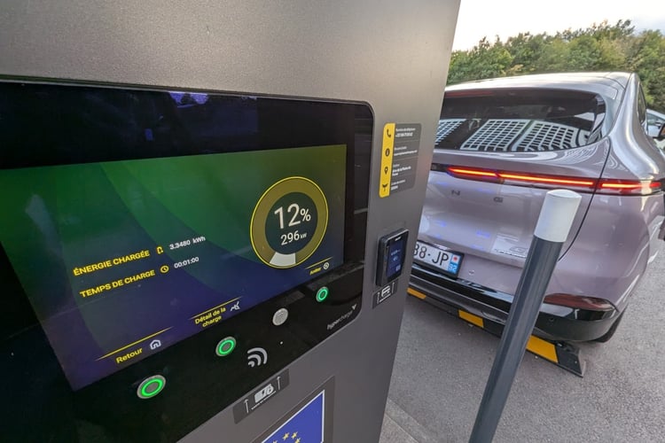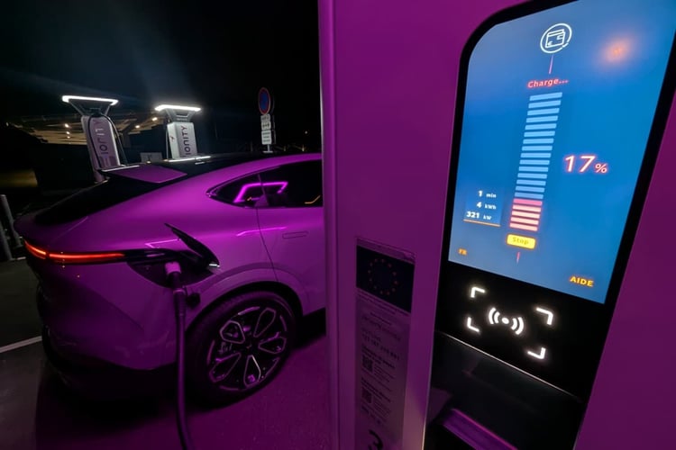 Le XPeng G6 a paradoxalement montré le meilleur de lui-même sur des bornes avec une puissance comprise entre 300 et 400 kW, comme nous l’avons vérifié avec une borne Fastned Alpitronic de 300 kW, et des bornes Ionity-ABB et EVBox réservée aux poids lourds électriques de, soi-disant là encore, 350 et 400 kW.