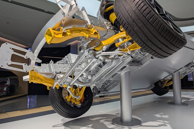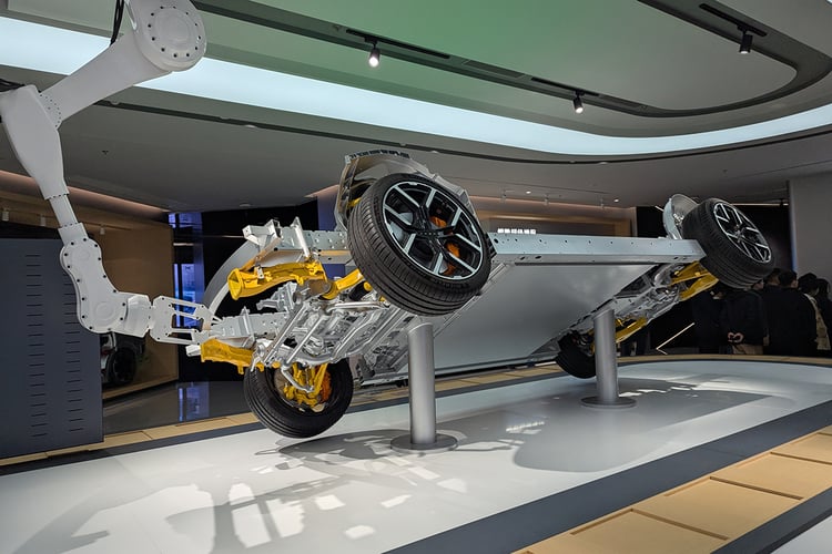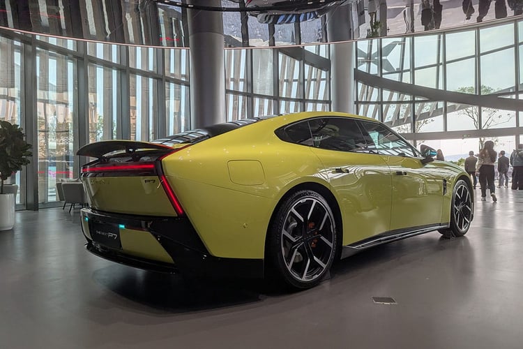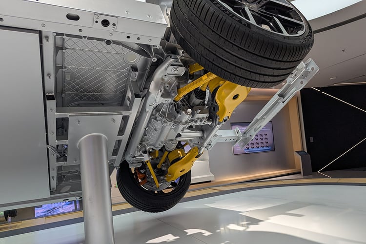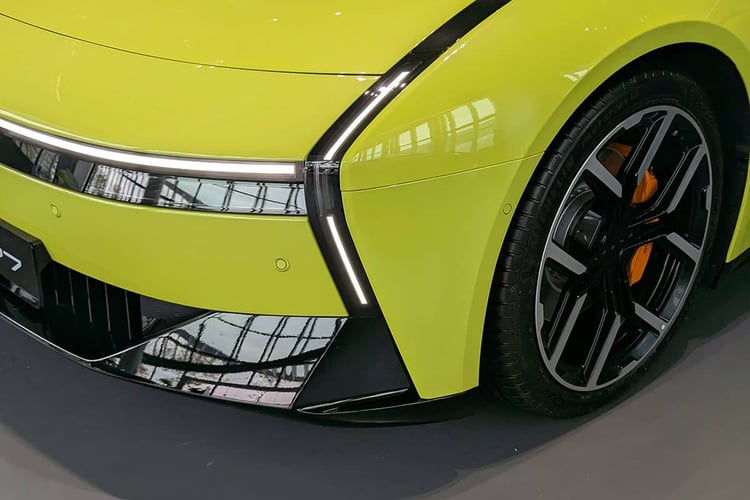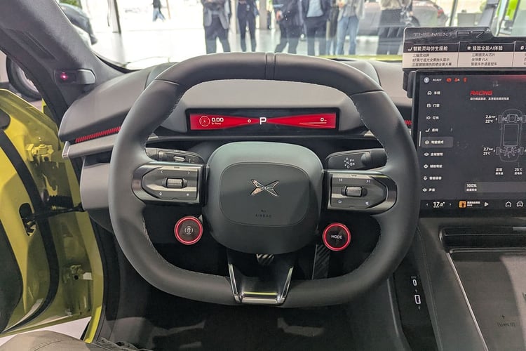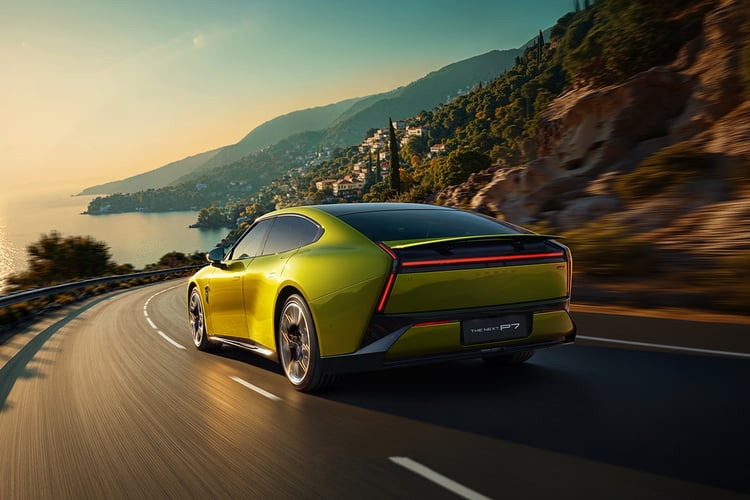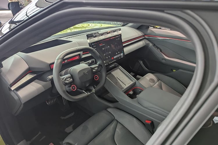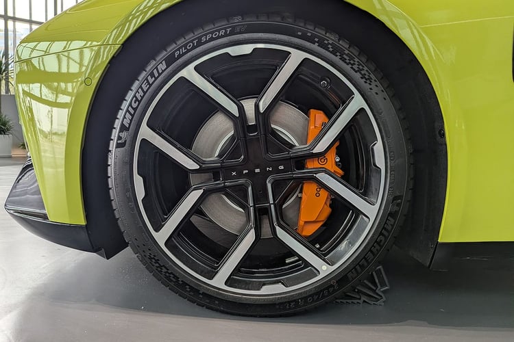 Pour profiter de toutes les capacités de ce châssis, les jantes de 21 pouces chaussées de Michelin Pilot Sport EV semblent plus indiquées que les roues de 20 pouces avec la gomme Maxxis Victra Sport 6 à faible résistance. Mais ces dernières cachent plus efficacement les disques de frein, qui apparaissent bien petits derrière les jantes. Ne jugeons pas visuellement les performances de freinage, mais on pourrait s’attendre à des disques plus larges à ce niveau de gamme. De plus, la P7 ne bénéficie pas des roues arrière directrices (5° d’angle maximum) compatible avec cette nouvelle base technique et que l’on retrouve pourtant avec le Xpeng X9. Précisons toutefois que la stupéfiante Lucid Air s’en passe, alors que le système monté sur la Lotus Emeya 900 n’apporte pas vraiment satisfaction.