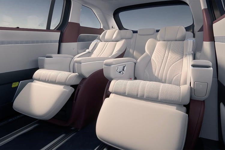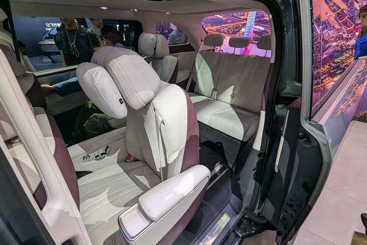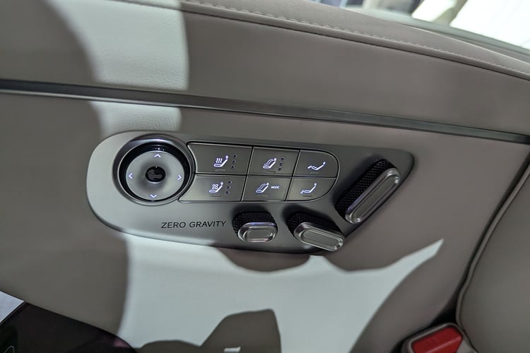 A l’avant, la présentation est tout aussi luxueuse et impeccable. La finition et les matériaux utilisés ne prêtent pas le flanc à la critique, et se révèlent même supérieurs à ce que l’on retrouve à bord des Mercedes Classe V ou Volkswagen ID.Buzz. Le poste de conduite est composé de deux écrans avec une instrumentation de 10 pouces et un écran tactile central de 17 pouces. Comme à bord d’autres véhicules de la gamme, les commandes physiques sont aux abonnées absentes.