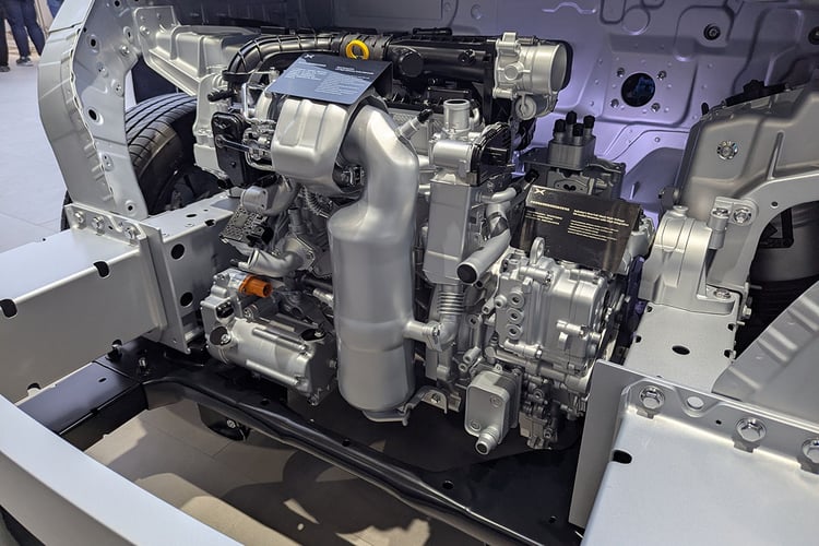 Nous ne savons pas si ce bloc 1,5 l turbo essence à cycle Miller a été développé à partir d’une feuille blanche, ou si les ingénieurs ont utilisé une base déjà connue. En tout état de cause, ses performances surprennent : avec son taux de compression de 16,0:1, ce bloc affiche un rendement thermodynamique quasi record de 43 % selon le constructeur. C’est supérieur aux meilleurs moteurs hybrides de Toyota ou au tout nouveau bloc du Nissan Qashqai e-Power, équipé de la technologie STARC. Le moteur chinois semble d’ailleurs reprendre les caractéristiques de ce dernier, avec un fonctionnement à bas régime et des échéances d’entretien repoussées grâce à l’utilisation d’une huile spécifique. XPeng annonce un volume sonore à bord supérieur de 1 dB quand il se met en route. Pour mettre en perspective, nous avons mesuré 3 dB de plus lorsque le générateur rotatif du Mazda MX-30 REV est allumé.