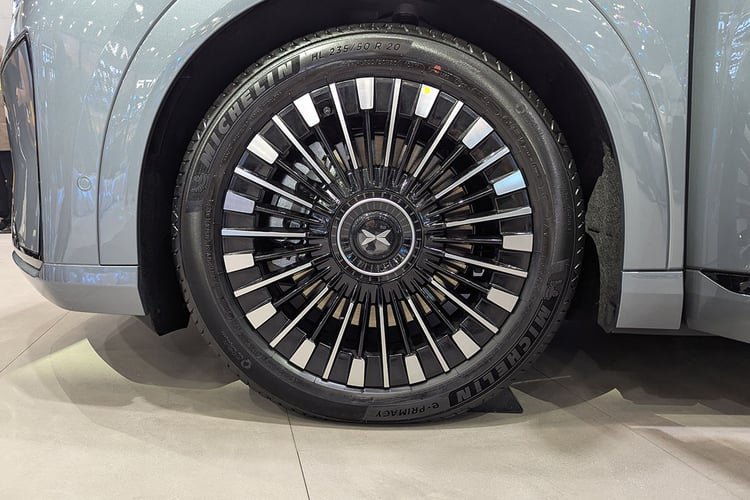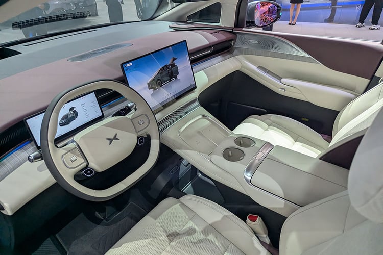 Porte-étendard du constructeur, le XPeng X9 reprend tout ce qui se fait de mieux en matière d’équipements de confort et de sécurité. S’il repose lui aussi sur une suspension pneumatique adaptative, il se démarque de la grande berline P7 avec un système à quatre roues directrices permettant de réduire le rayon de braquage à 5,4 m (angle maximal des roues de 5°). Les béquilles électroniques et le système de conduite semi-autonome reposent sur les puces Turing de la marque, directement issues des recherches en matière d’intelligence artificielle pour la robotique et les engins volants. Au nombre de trois en version haut de gamme, elles promettent une puissance de calcul totale de 2 250 TOPS (Tera Operations Per Seconds).