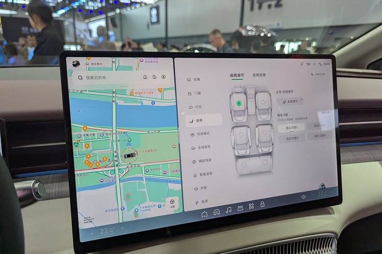 C’est évidemment l’espace arrière qui fait tout le sel de ce modèle, avec un niveau de confort en haut du panier. À l’instar de nombreuses autres propositions de ce type en Chine, le XPeng X9 adopte à la deuxième rangée deux fauteuils électriques dignes de la Classe Affaire d’un avion de ligne. Ils disposent des fonctions haut de gamme (chauffage, clim’, massage) mais aussi d’une position Zero Gravity pour pouvoir s’allonger dans le meilleur des conforts. Contrairement à un Denza D9, la platine de commande n’est pas tactile.