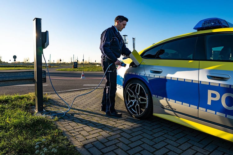 Pour le salon d’Essen 2022, AC Schnitzer a présenté un programme de préparation spécial sur base de BMW i4 Polizei.