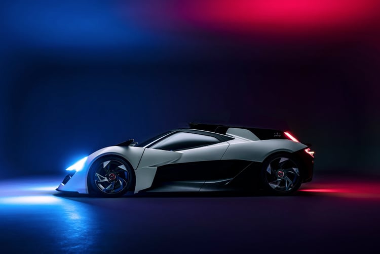 Si le design de l’AP-0 semble si agressif, c’est parce que ses créateurs ont voulu lui donner des airs de dragon, de l’avant avec des phares en forme d’yeux jusqu’à la poupe à crête dorsale. Apex revendique également un style Le Mans et des touches inspirées de la Formule 1. Au-dessus du pilote : un toit en verre en forme de larme.