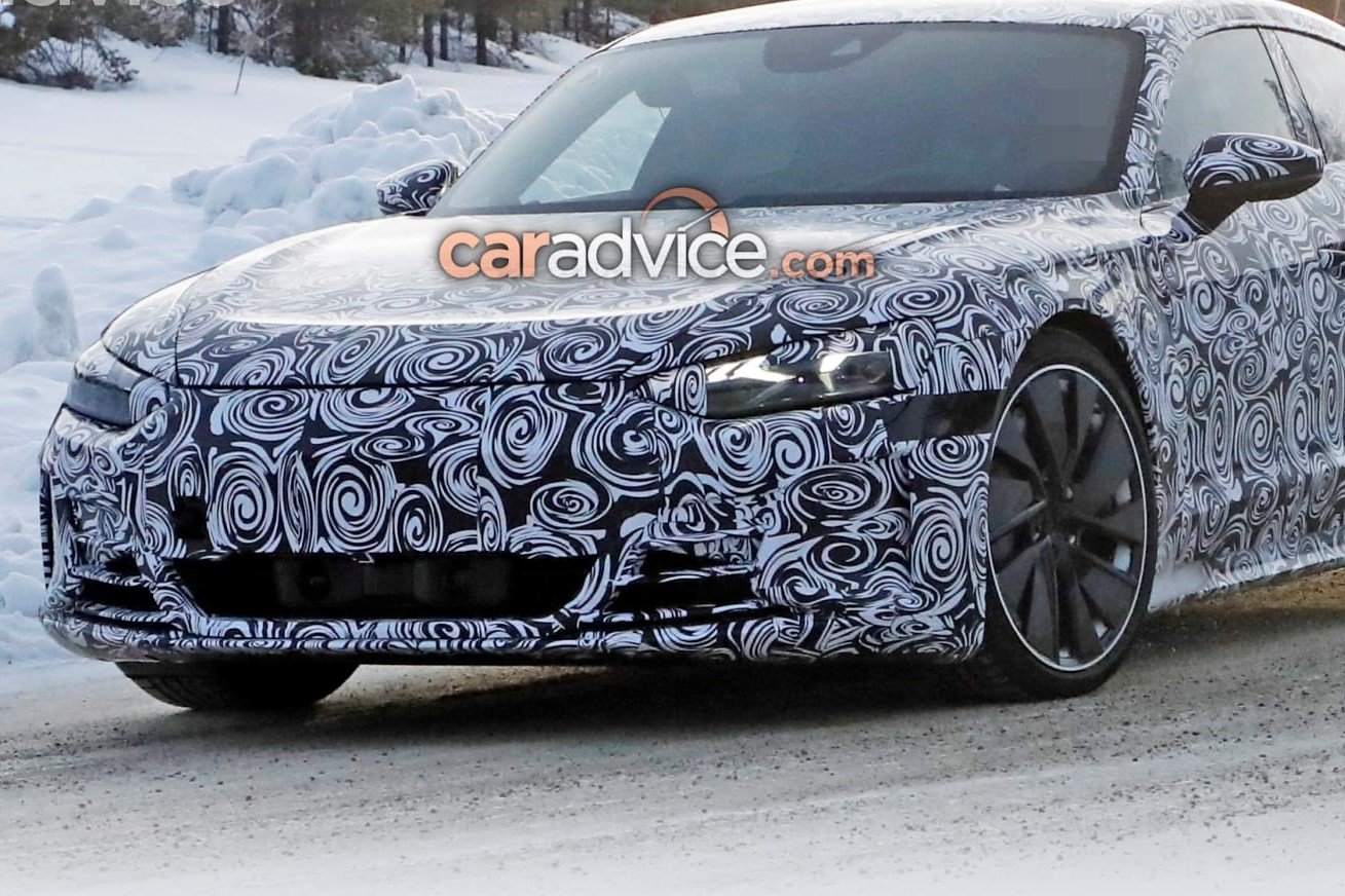 Future rivale de la Tesla Model S, l’Audi e-tron GT a été aperçue pour la première fois dans une version de production en grande partie camouflée.