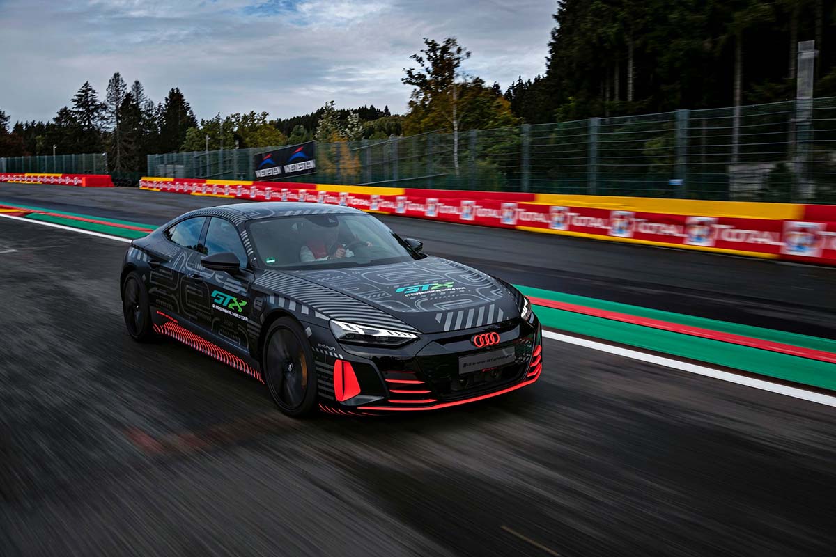 En attendant sa sortie et une confirmation définitive de sa fiche technique, l’Audi RS e-Tron GT fera sa première représentation publique ce week-end à l’occasion des 24 heures de Spa. La berline électrique prendra alors la tête de la meute de pistardes pendant le tour de formation.