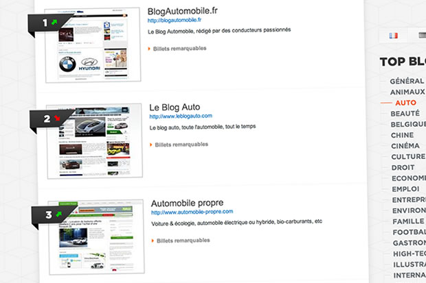 « Ebuzzing édite depuis 2006 le classement de blogs référent en Europe (anciennement classement WIKIO). Plus de 2 millions de sources sont indexées et analysées. Le classement sémantique des contenus est automatique. La popularité des blogs et des articles est calculée grâce à notre algorithme prenant en compte les partages et les recommandations de contenu sur Twitter, Facebook, les blogs et les principales plateformes d’échange de contenu. »