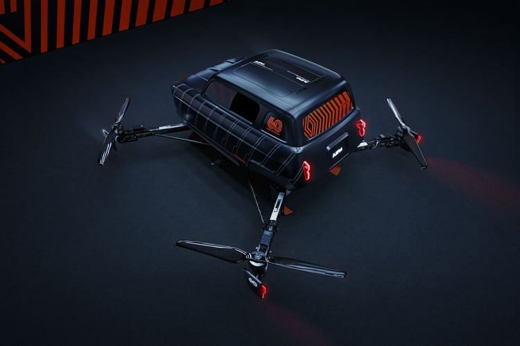 Souhaitant conquérir les airs, TheArsenale a imaginé le concept Air4 comme une véritable voiture volante. Conservant les mêmes lignes et le même gabarit que la 4L originale, le concept reçoit 4 rotors permettant un décollage à la verticale. En vol, la voiture s’incline automatiquement pour optimiser la prise d’air.