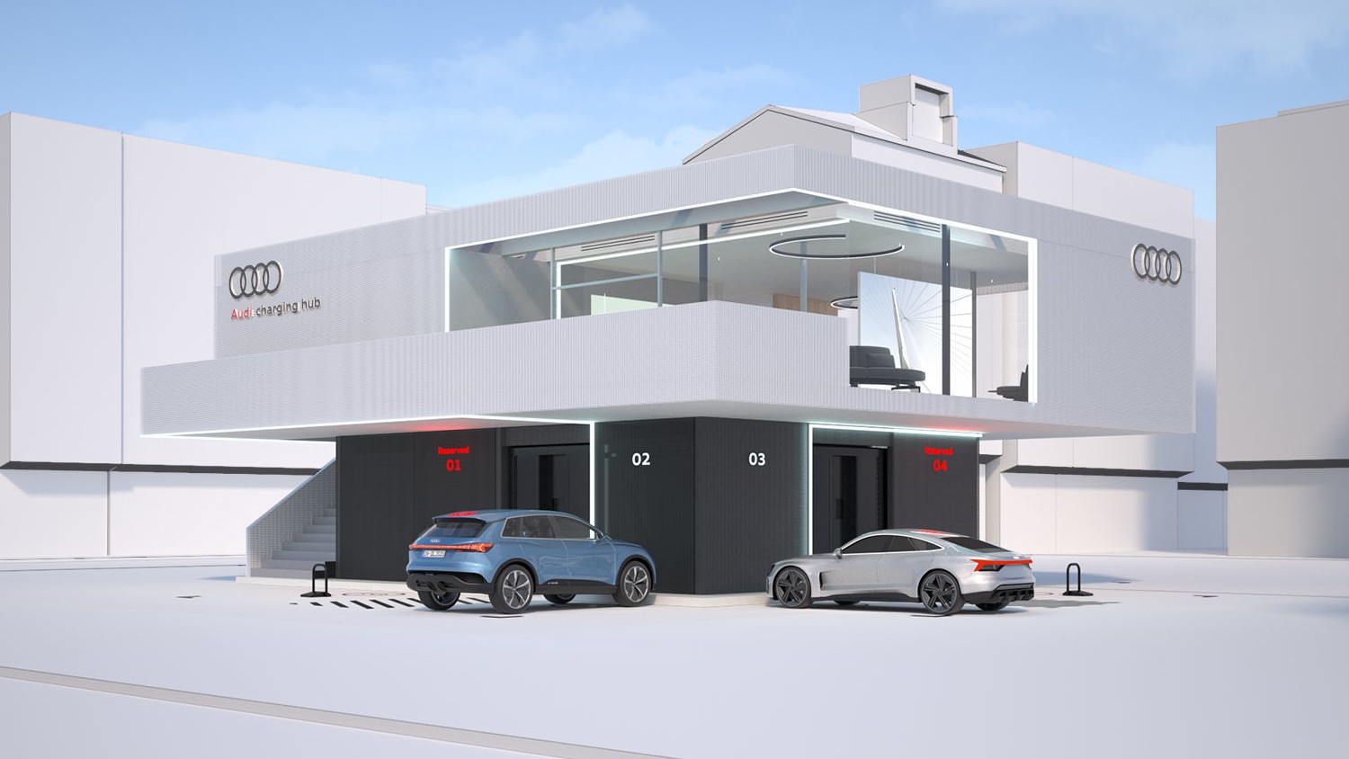 Mais ces hubs ne seront pas uniquement des stations, puisque chacun d’entre eux proposera un lounge premium pour se restaurer et se détendre. Les propriétaires d’Audi pourront réserver une place sur un de ces hubs. Les conducteurs d’autres véhicules pourront s’y connecter à condition qu’une borne soit libre.