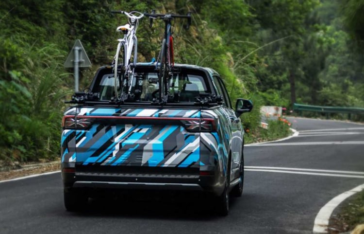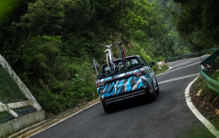 C’est à présent un tout autre produit que Geely s’apprête à nous dévoiler puisqu’il s’agira d’un pick-up, baptisé Radar. Mais qui dit pick-up ne dit pas forcément outil de travail. L’engin ne sera d’ailleurs pas vendu par la division véhicules utilitaires Farizon, mais sous la marque Geely. Comme en témoignent les images du véhicule, encore camouflé mais accompagné de cyclistes, Geely ciblera une clientèle adepte des loisirs. En retard sur l’électrique, Geely sera en revanche en avance sur ce terrain des loisirs. Un marché annoncé pour une forte croissance en Chine dans les années à venir.