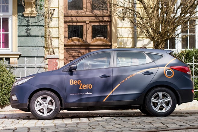 En Allemagne, le groupe Linde lancera cet été à Munich le service d’auto-partage BeeZero avec une flotte de 50 voitures à hydrogène.