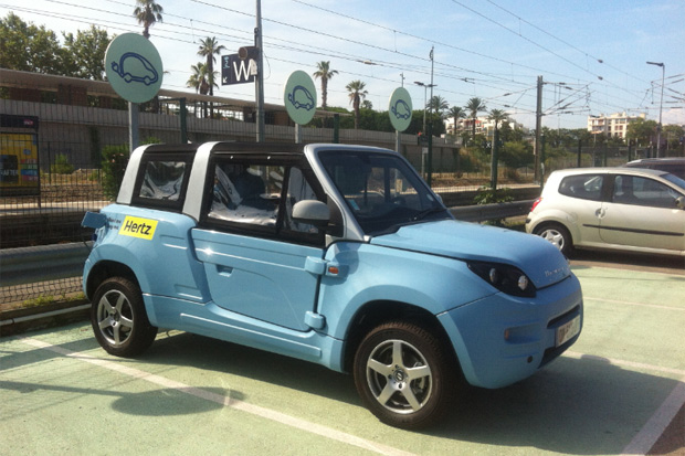 Pour découvrir de façon originale les paysages de la Côte d’Azur, les vacanciers peuvent désormais louer le cabriolet électrique Bluesummer de Bolloré dans certaines agences Hertz du sud de la France.