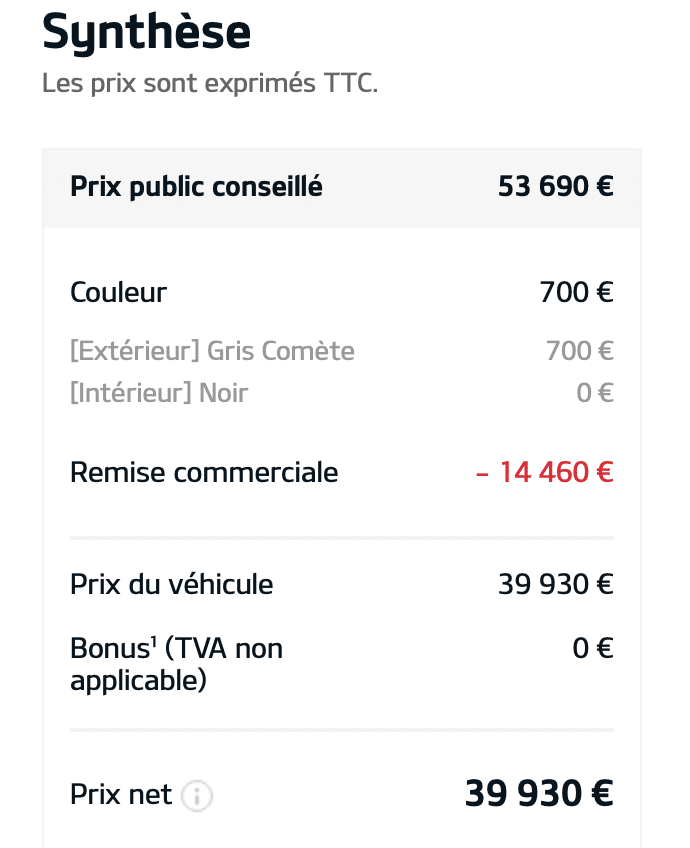 D’ailleurs, en regardant ce qui existe dans le stock, on a pu voir une méga-promo sur un exemplaire en vente au niveau d’Avignon. Un modèle Air Active à grande batterie est affiché avec un rabais de 14.460 € ! En prenant en compte une option (la peinture métallisée), cet exemplaire est proposé à 39.930 € !