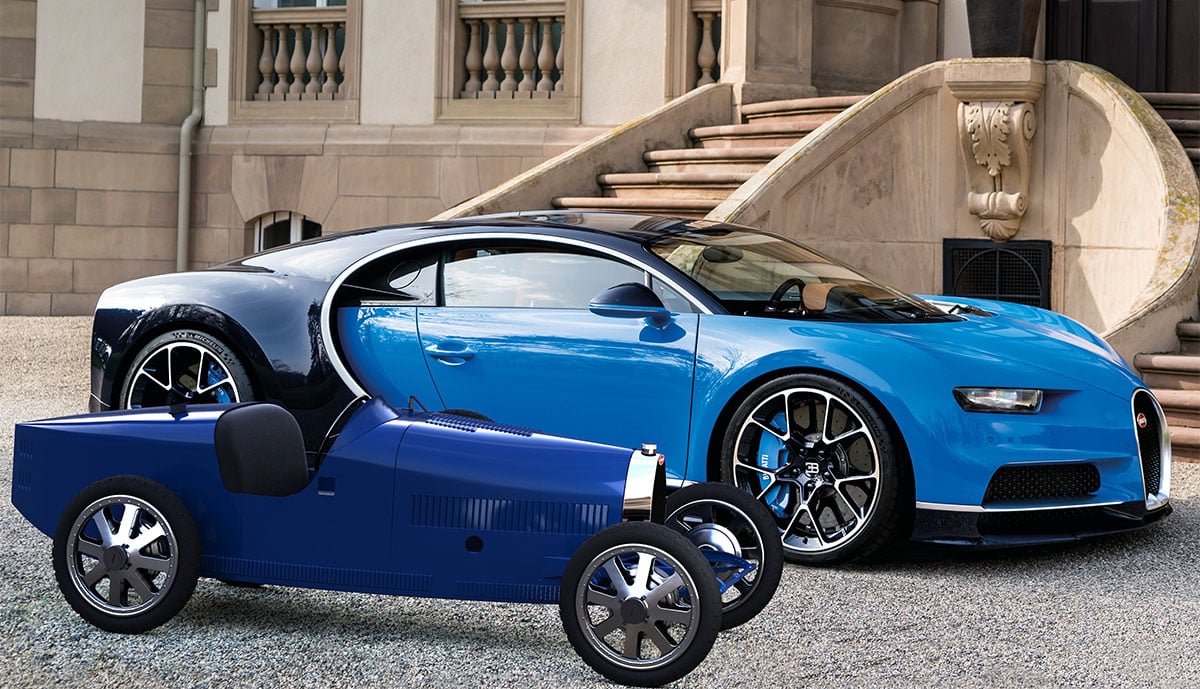 Ettore et Jean Bugatti ont construit la première Bugatti Baby en 1926. Plus petite, à l’échelle ½, elle était conçue pour Roland, le petit frère de Jean, alors âgé de 4 ans. Ayant plu aux passionnés, elle fut produite en série durant 10 ans, également à 500 unités.