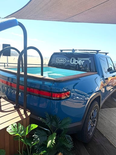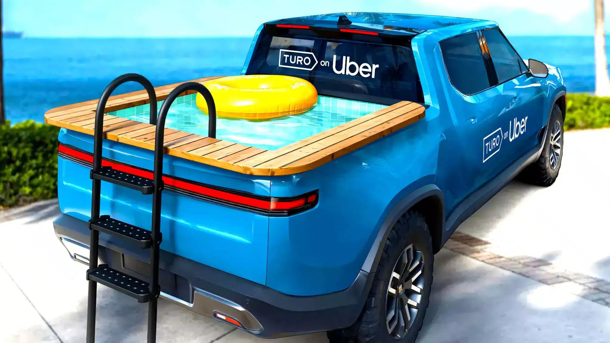 Un pick-up transformé en piscine roulante. L’image prête à sourire, mais elle est bien réelle. Uber et Turo, plateforme de location de véhicules entre particuliers, se sont alliés pour donner vie à ce projet insolite. Le modèle choisi est un Rivian R1T, un pick-up 100 % électrique, dont la benne a été remplie d’eau pour accueillir quelques chanceux.