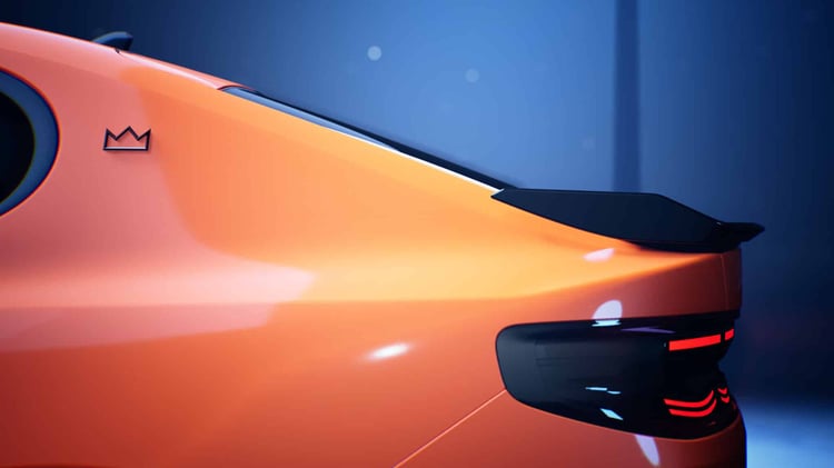 Extérieurement, cette Ford Capri se distingue par une teinte Signal Orange, rappelant les modèles historiques de Ford des années 70. Le numéro « 7 », porté par Cantona durant sa carrière, est symbolisé par une bande noire sur les flancs, tandis que sa signature apparaît sur les ailes avant. On a aussi un badge 3D en forme de couronne à l’arrière.