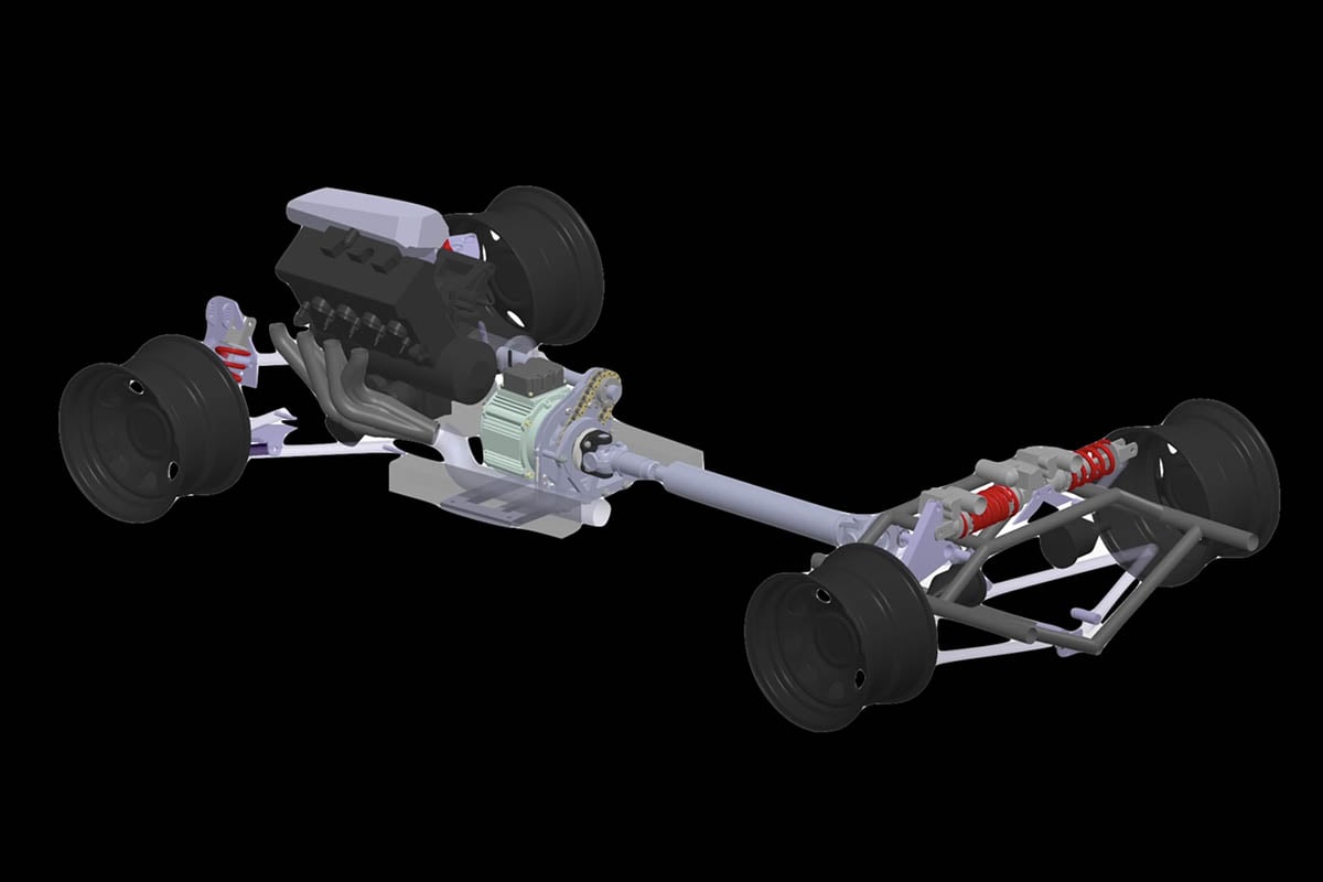 La transformation s’accompagne aussi d’une nécessaire préparation du châssis, avec notamment la présence d’un système de freinage avec des disques de Ford Mustang et des étriers de Nissan 350Z.