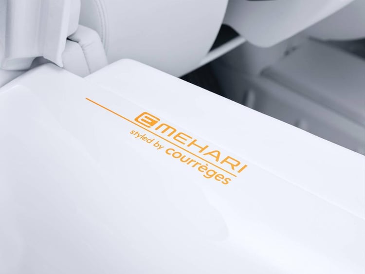 Côté design, cette Citroën e-Méhari Courrèges joue la carte de l’élégance avec une robe blanche contrastée par plusieurs inserts oranges vifs sur les roues, le volant et le long de la planche de bord. Parmi les autres changements esthétiques, on notera la suppression de l’arceau arrière, remplacé par deux sangles de maintien latérales, l’utilisation d’un volant au design spécifique et du cuir blanc recouvrant la planche de bord, l’intérieur des portes et la banquette arrière.