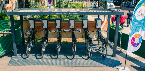 La première vélo-station a été installée à l’occasion de Roland Garros au bénéfice de la Fédération Française de Tennis.